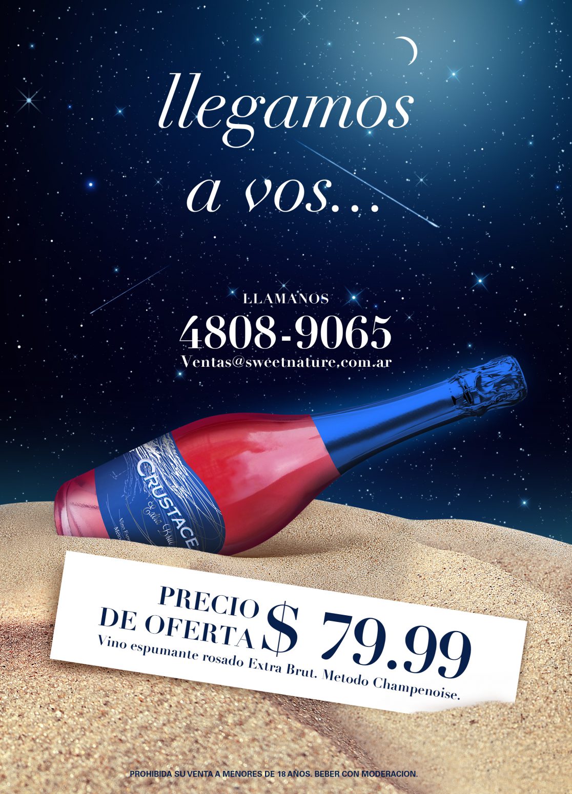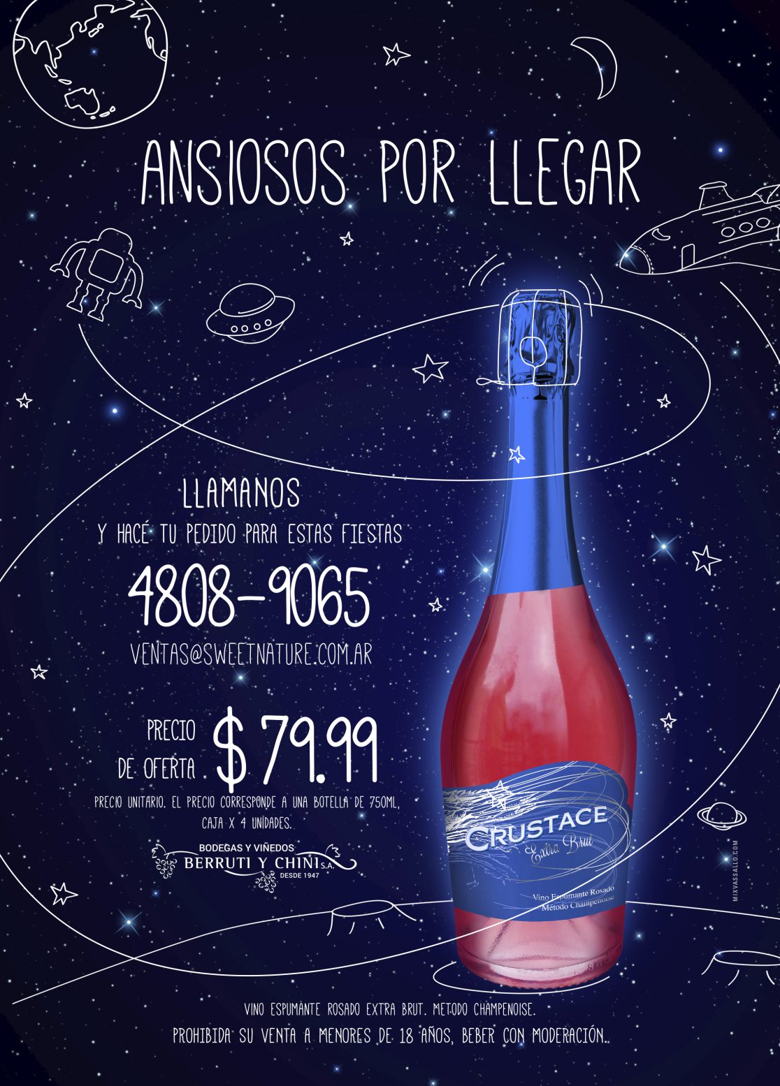 Etiqueta ilustrada para el espumante Crustace de Bodega Berruti & Chini. Stamping plata.