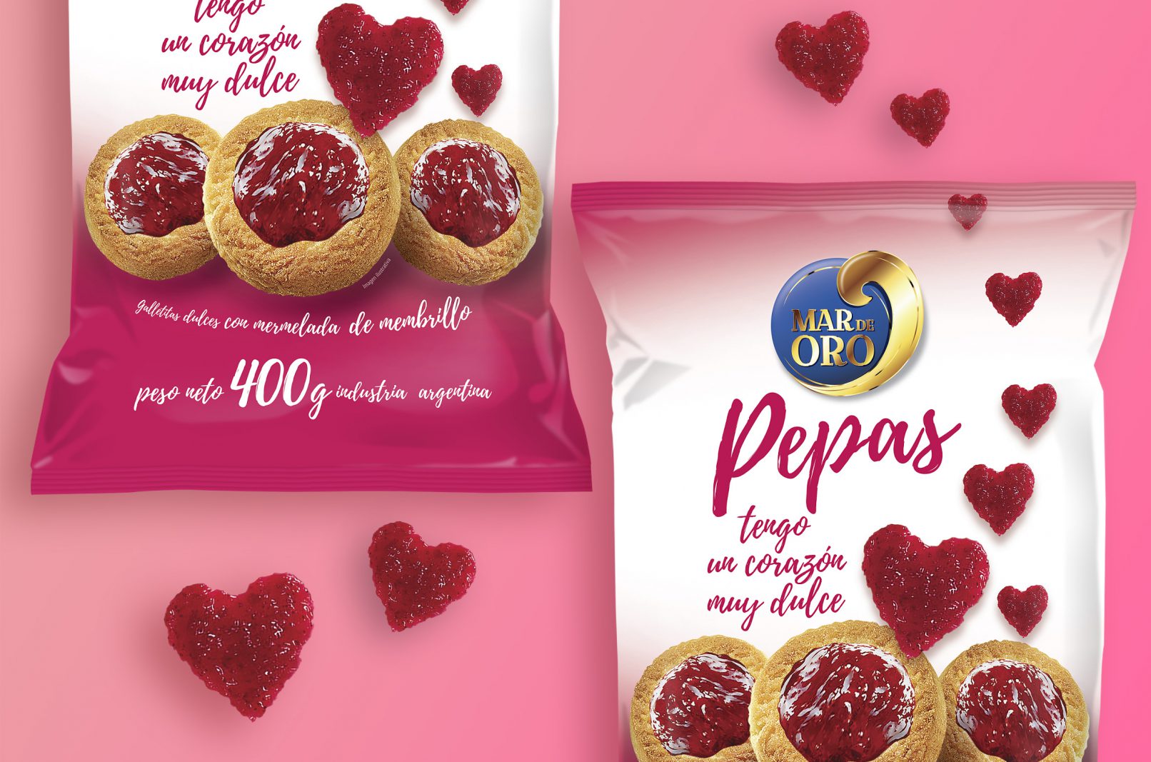 Luego de la creación del logo Mar de Oro, una de las marcas de la empresa Venhor, diseñamos el packaging de pepas clásicas. Un packaging del que te vas a enamorar. Pura dulzura.